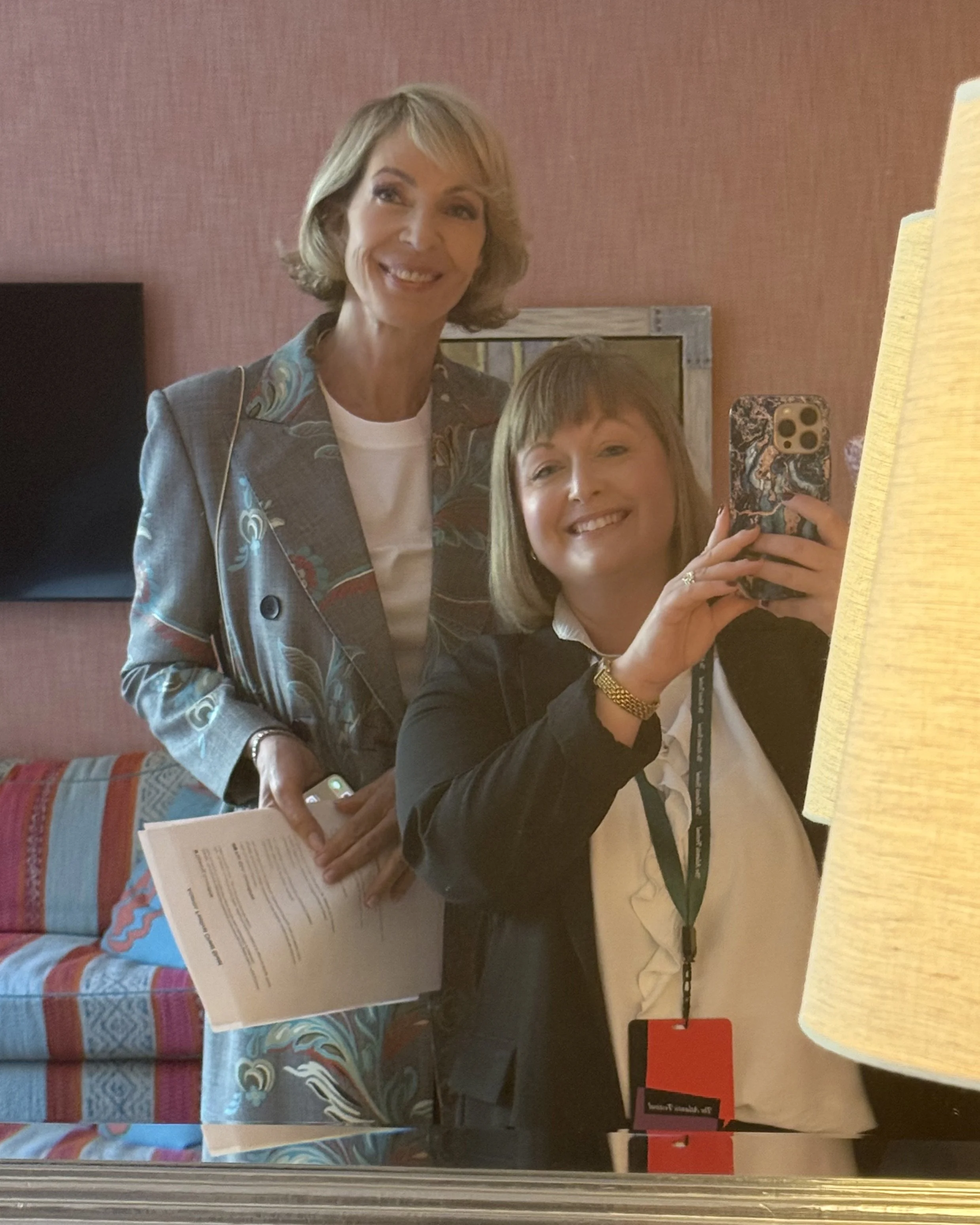 Allison moved fluidly between reviewing her printed notes, fielding incoming calls, and checking in with her assistant: a masterclass in calm amidst the chaos. But what struck me most was the tone of the room. Despite the compressed timeline, the vibe was grounded and gracious. Chatter filled the room as Matin and I connected happily for the first time in person after recently connecting via Instagram, while Jill and I reminisced about first meeting years ago on the set of Allison’s sitcom MOM. Allison paused at one point to ask me about my son and open the little gift I brought her from my recent trip out West.