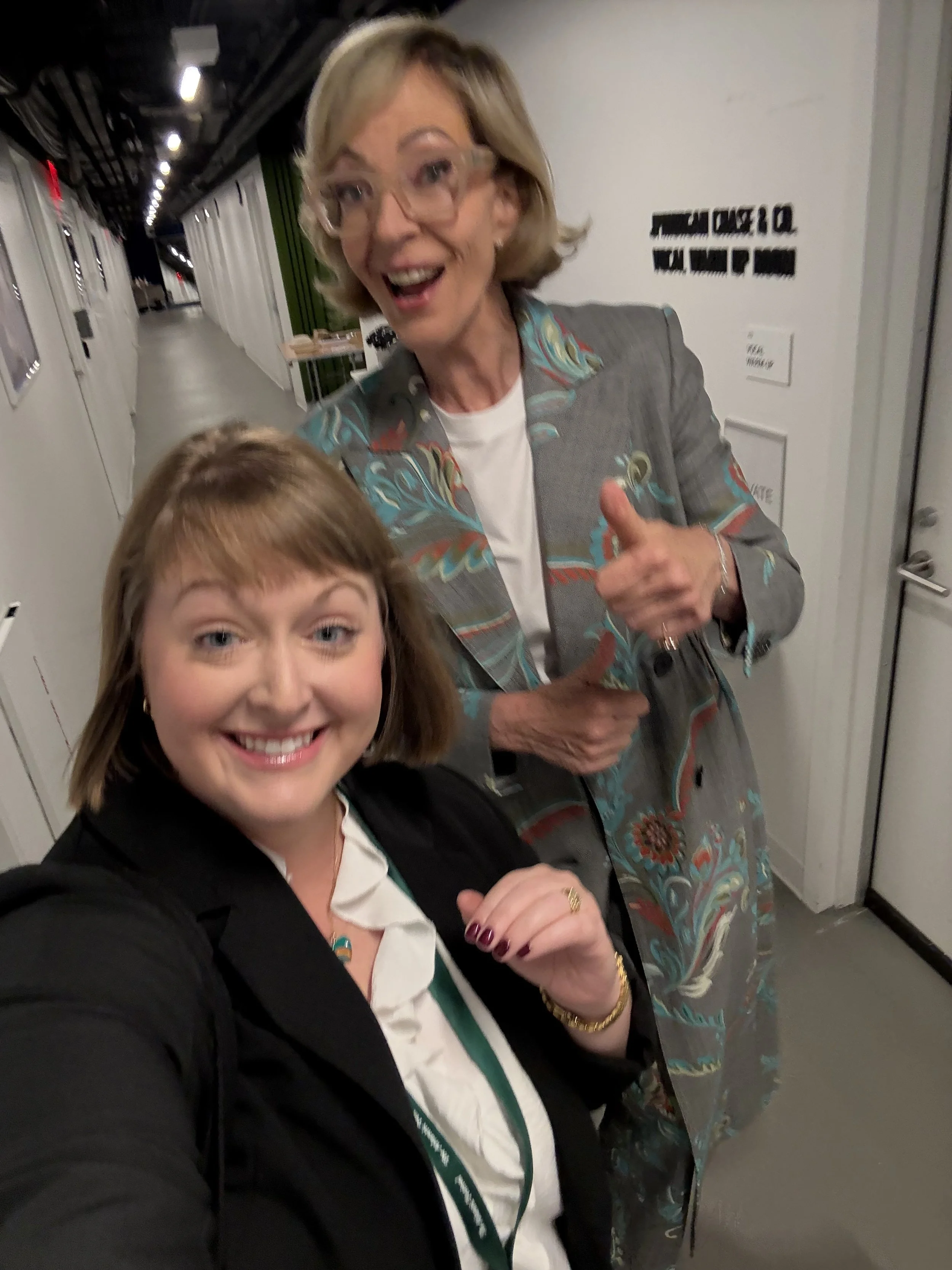 Each panelist had a lovely private dressing space to decompress in before the event. Monica Lewinsky was already on stage, her voice echoing faintly from the monitors. Allison, Debora, and Keri exchanged hugs, inside jokes, and bits of last-minute chatter. Keri brought wine (an offering and a wink) while Debora calmly juggled final prep like someone used to holding multiple worlds at once.